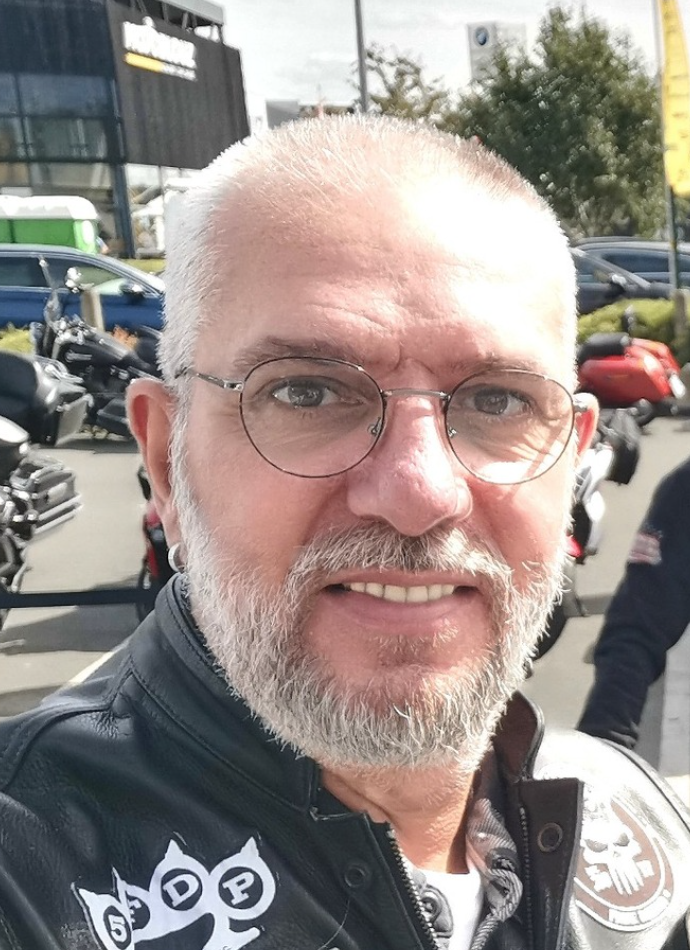 Motard quotidien depuis plus de 35 ans, et passionné par la Kustom Kulture, je roule en Harley-Davidson Road Glide Special de 2017, ainsi qu'avec une Triumph 1200 Tiger Explorer de 2012.